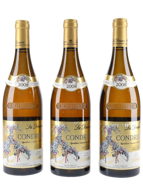 This lot contains three bottles of 2008 Condrieu La Doriane from winemaker E Guigal.