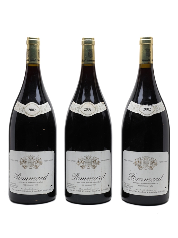 This lot contains three magnum bottles of 2002 Pommard from Burgundy producer Paul Garaudet, whose estate is located between Volnay and Meursault. Farming 10.5 hectares of vines, the family estate produces around 50000 bottles per year.