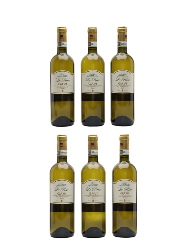 This lot contains six bottles of Gavi Le Rive 2014 from the Rovereto Cru in Piedmont, Italy, made from the Cortese grape variety.