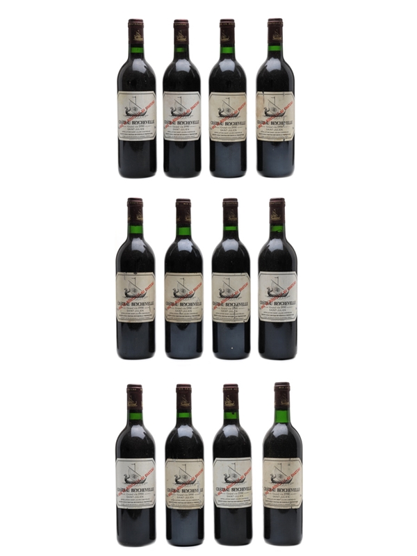 This lot contains twelve bottles of 1990 Château Beychevelle Grand Vin from Bordeaux's Saint-Julien appellation.