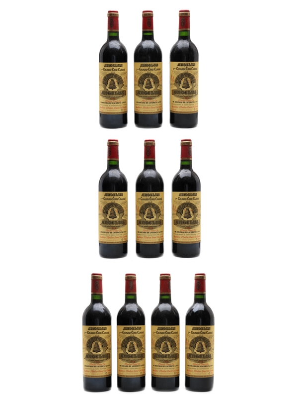 This lot contains ten bottles of 1998 Château Angelus, a Premier Grand Cru Classé wine from the Saint-Emilion appellation.