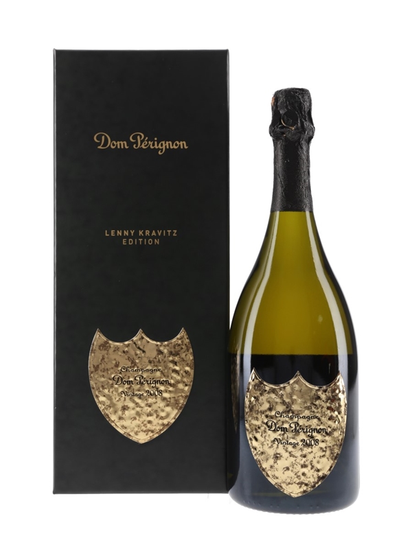 A bottle of 2008 Dom Pérignon Vintage Champagne. This is the Lenny Kravitz Edition.