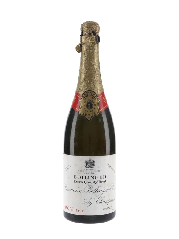 An old bottle of 1961 Vintage Bollinger Extra Quality Champagne.