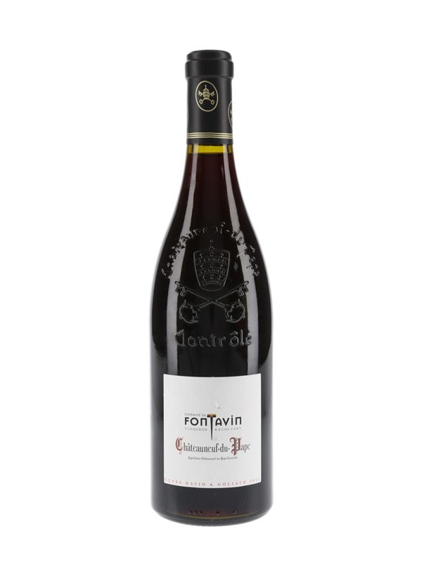 A bottle of Chateauneuf du Pape 2012 Cuvée David & Goliath from Domain De Fontavin.