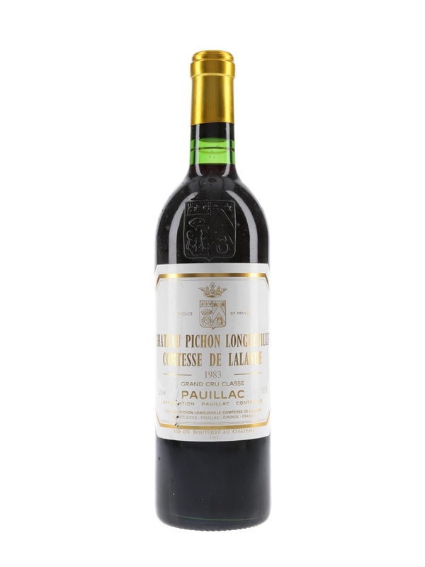 A bottle of 1983 Château Pichon Longueville Comtesse de Lalande from Bordeaux's Pauillac appellation.