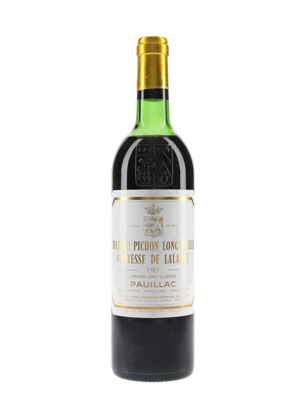 A bottle of 1983 Château Pichon Longueville Comtesse de Lalande, a 'Super Second' growth from Bordeaux's Pauillac appellation.