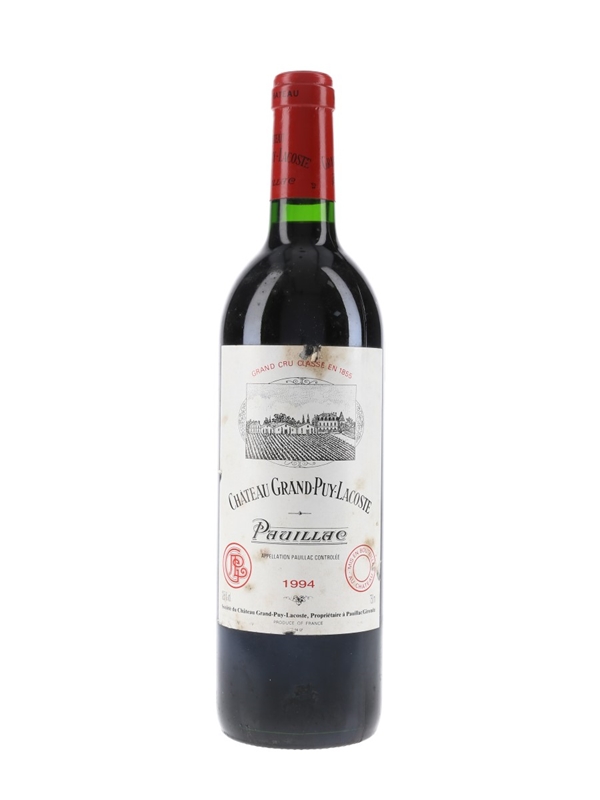 A bottle of 1994 Château Grand-Puy-Lacoste Grand Cru Classé from Bordeaux's Pauillac appellation.