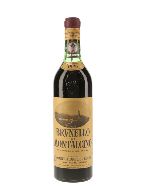 A bottle of 1970 Castiglione del Bosco Brunello di Montalcino from Italy.
