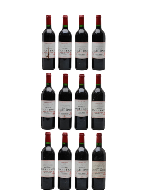 This lot contains 12 bottles of 1996 Chateau Lynch Bages Grand Cru Classe from Bordeaux's Pauillac appellation.