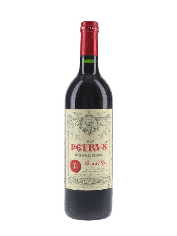 A bottle of 1995 Château Pétrus from Pomerol in Bordeaux.