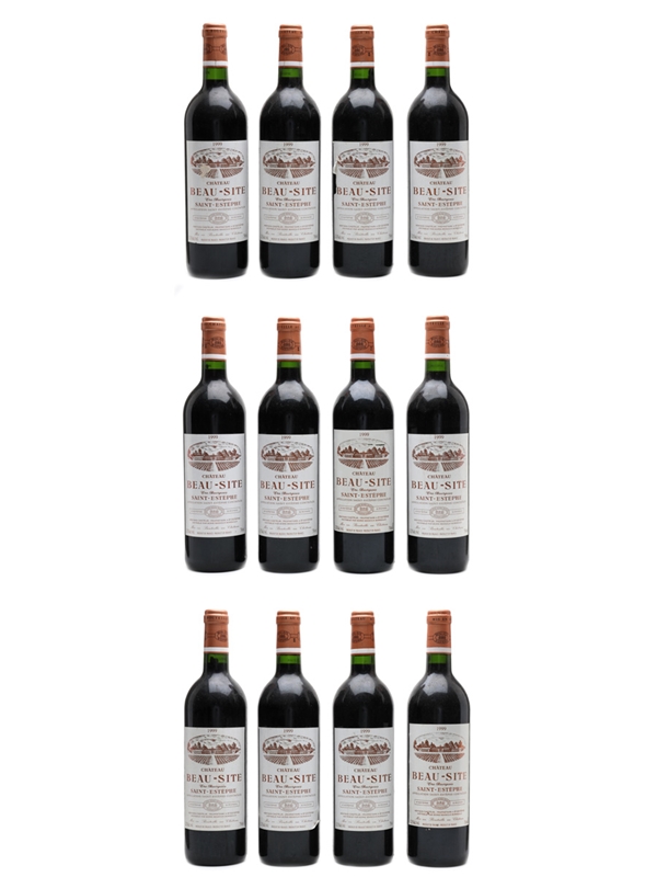 This lot contains 12 bottles of 1999 Chateau Beau-Site from Bordeaux's Saint-Estephe appellation.