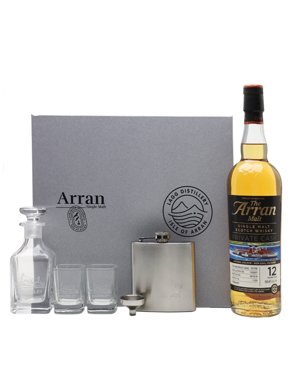This whisky was distilled on 13 September 2007, matured in a single bourbon barrel and bottled at cask strength on 9 October 2019. It comes in a presentation box with a stainless steel hip flask and funnel, a small decanter and two tot glasses, each emblazoned with the Waverley.