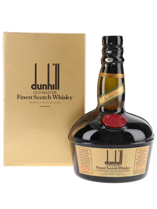 A bottle of Dunhill Old Master Finest Scotch Whisky, blended and bottled by Alfred Dunhill Limited.