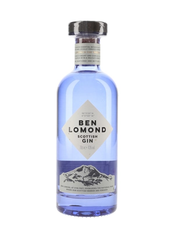 A bottle of Ben Lomond Scottish Gin, named after Scotland's most southerly Munro. This is made with 11 botanicals including Scottish blackcurrants and locally foraged rowanberries from the Loch Lomond and The Trossachs Area.