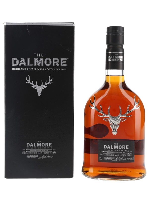 A bottle of The Dalmore 2015 Custodian Bottling Millennium Release. This was distilled on 1 January 2000, matured in a Matusalem oloroso sherry cask and bottled at cask strength in 2015.