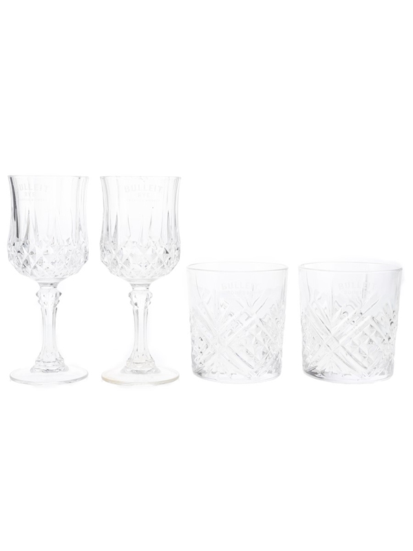 This lot containing two pairs of Bulleit Bourbon & Rye glasses from Cristal D'Arques. These measure approximately 9cm and 16cm tall.