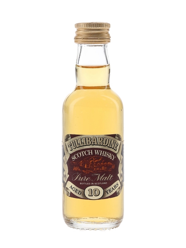 A miniature bottle of Tullibardine 10 Year Old Pure Malt Scotch Whisky. We estimate this was bottled in the 1980s.