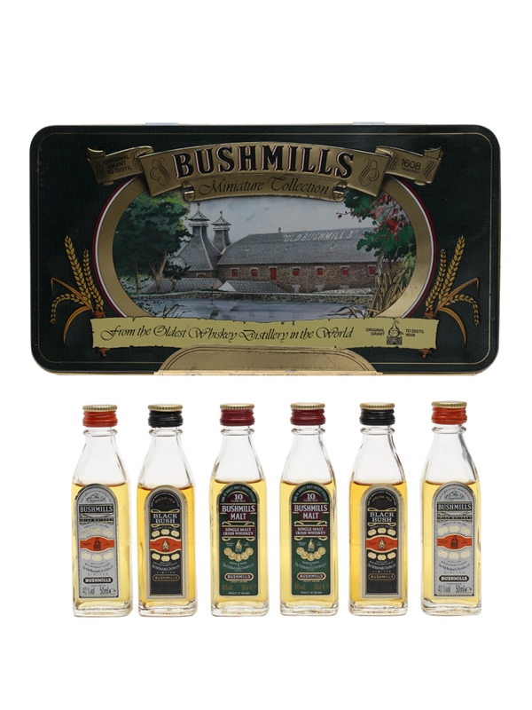 The Bushmills Miniature Collection contains six miniature bottles of Irish whiskey from the Oldest Whiskey Distillery in the World: