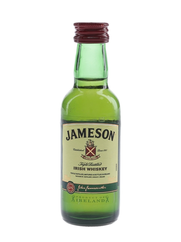 A miniature bottle of Jameson Irish Whiskey bottled by John Jameson & Son.