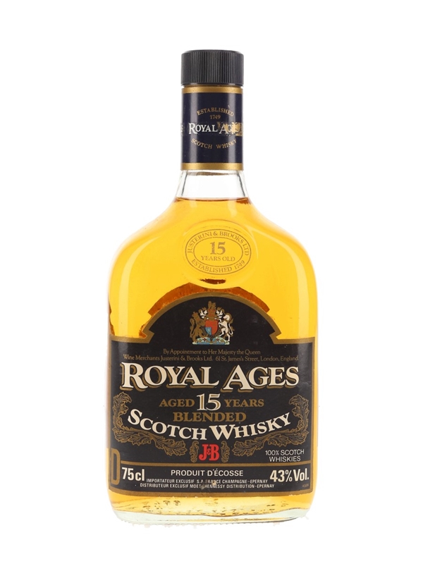 A bottle of Royal Ages 15 Year Old Blended Scotch Whisky from Justerini & Brooks. This was bottled for the French market, we estimate in the 1970s.