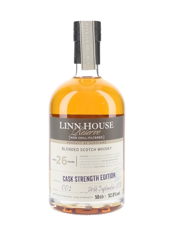 A 50cl bottle of Linn House Reserve 26 Year Old Cask Strength Edition Blended Scotch Whisky, bottled on 26 September 2018 by Chivas Brothers.