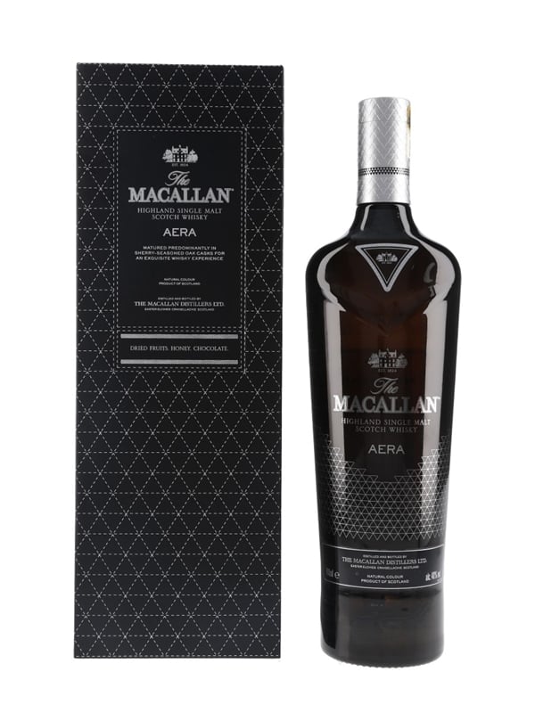 A bottle of The Macallan Aera Highland Single Malt Scotch Whisky. This was matured in sherry-seasoned casks and bottled for the Taiwanese market.