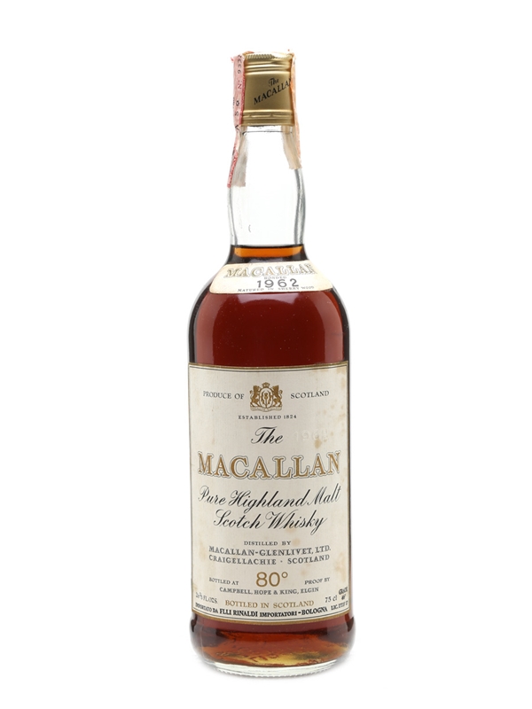 A bottle of 1962 Macallan which was bottled sometime in the 1970s by Campbell, Hope & King for Italian importer Rinaldi.