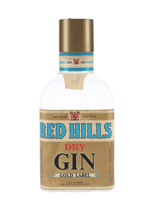 A bottle of Red Hills Gold Label Dry Gin from Italy. We estimate this was bottled in the 1970s.