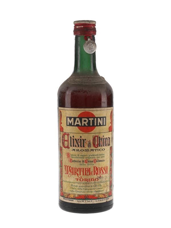 A 50cl bottle of Martini Elixir di China, a herbal liqueur flavoured with cinchona bark. We estimate this was bottled in the 1950s.
