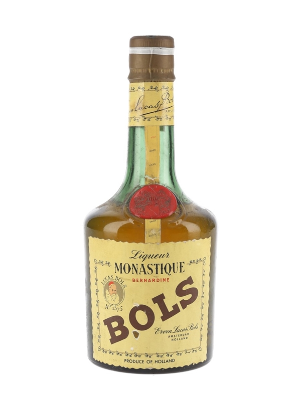 A bottle of Bols Monastique Bernardine Liqueur produced in The Netherlands by Even Lucas Bols.