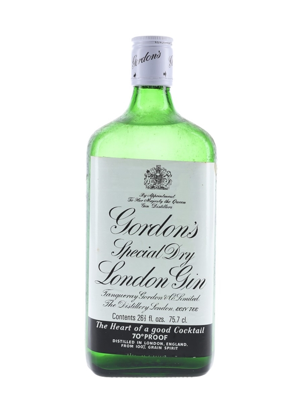 A bottle of Gordon's Special Dry London Gin. This was distilled and bottled by Tanqueray, Gordon & Co. Limited, The Distillery, London. We estimate this was bottled in the 1970s.
