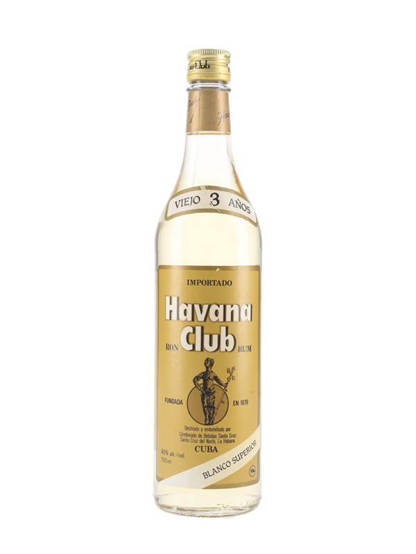 A bottle of Havana Club 3 Year Old Blanco Superior Imported rum produced in Cuba. We estimate this was bottled in the 1980s.