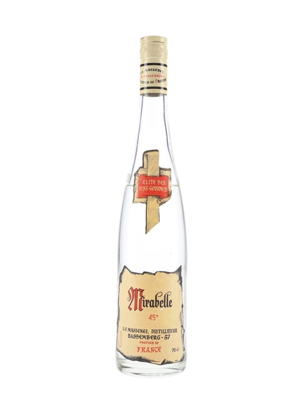 A bottle of Mirabelle 45 brandy from France.