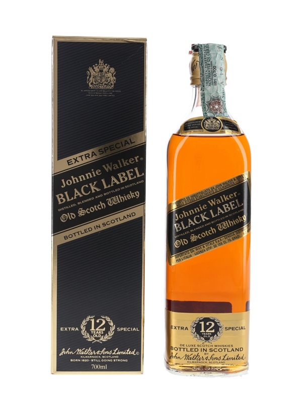 A bottle of Johnnie Walker Black Label 12 Year Old Extra Special Blended Scotch Whisky. This was bottled for the Italian market and imported by Wax & Vitale, we estimate in the early 1990s.