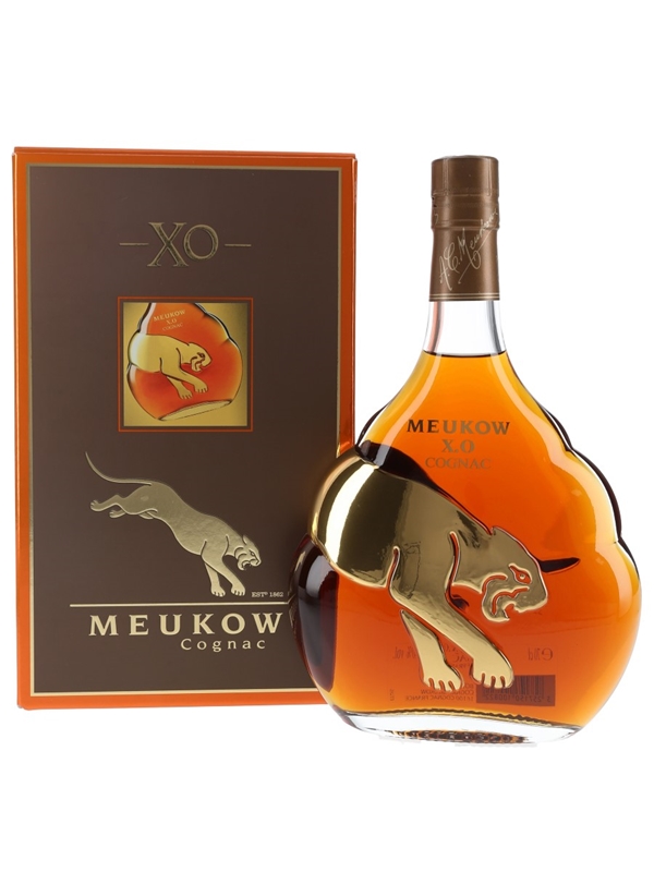 A bottle of Meukow XO Cognac. The bottling code indicates this was bottled in 2020.
