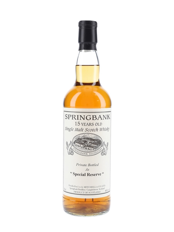 A private cask bottling of Springbank 15 Year Old Single Malt Scotch Whisky. This was distilled in 1996, matured in a single hogshead and bottled at 46% ABV as Special Reserve.