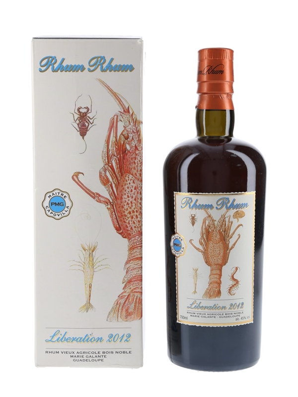 A bottle of Rhum Rhum Liberation 2012 agricole rhum from the island of Marie Galante, Guadeloupe. The 'Liberation 2012' refers to the bottling date rather than the distillation date.